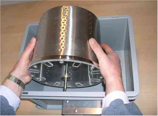 Trommel mit leichter Drehung in die Führungslager legen bis sie einrastet.